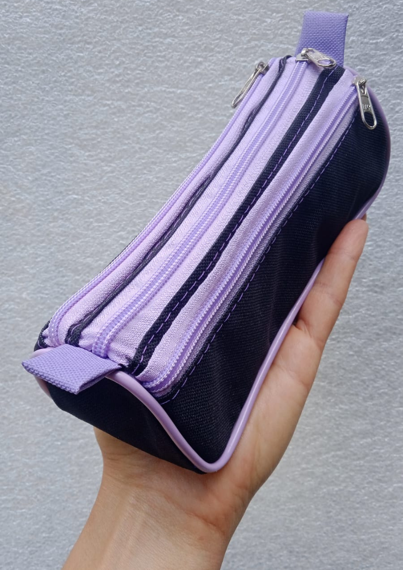 ESTOJO ESCOLAR 03 COMPARTIMENTOS PRETO E DETALHES LILÁS- AMAMOS A VIDA REAL